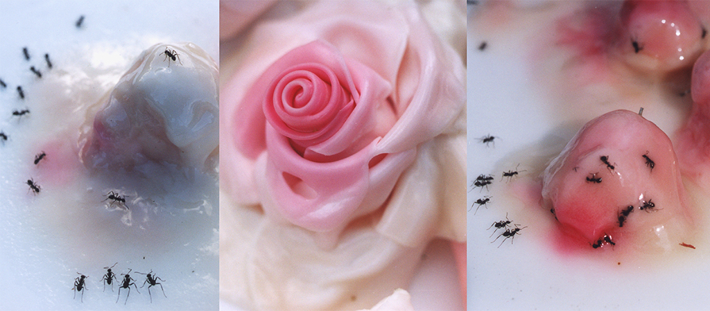 カメラは自分の視線に気づかせてくれますが、同時にレンズが人間の目には見えない視点を与えてくれることもあります。バラの作品を撮るときは接写レンズを使っているのですが、肉眼では見えないところまでよく見えるんですよ。砂糖の溶けかかっているところや埃、虫、そういうものもすべて入れたいんです。ある時にはアリが写りこんで、自分がアリや親指姫になってバラに顔をうずめているような感じになりました。