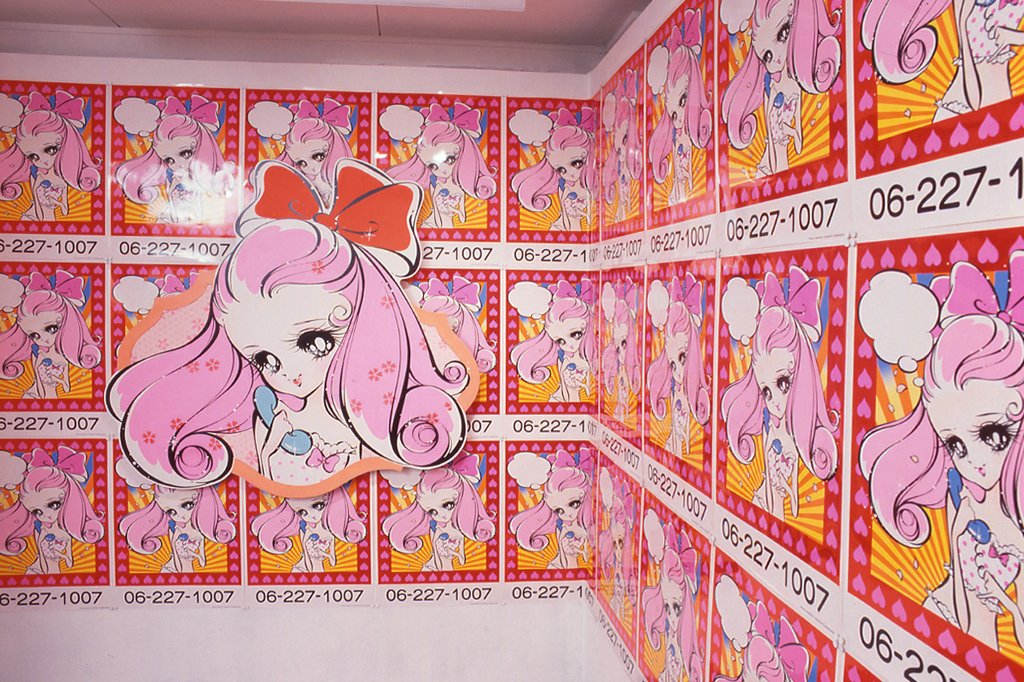 ピンクという色を強烈に意識しだしたころに見つけたのが、電話ボックスにみっちり貼られたピンクチラシです。ピンクには女の子のピンクと大人のピンクがあって、それらが表裏になっていることに気がついてしまったんです。当時は京都に住んでいましたが、木屋町の裏のほうに行くと電話 BOX やら電柱にチラシがたくさん貼ってあって、目に付かざるを得なかったんです。初めて見たときに「何これ!すごい」と衝撃を受けたと同時に「これは集めるしかない」と。京都だけでなく大阪や東京でも、行く先々で集めました。当時はポケットティッシュ広告でもテレクラの電話番号がたくさん配られていて、そういうものも作品にしたら面白そうだと思ってしまったんです。