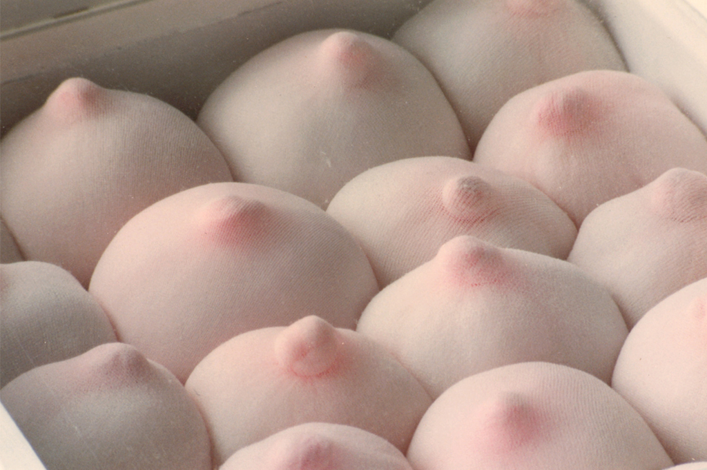 乳房の作品は学生時代ですが、「男性にあげたら驚くだろうな、困るだろうな」といういたずら心で作り始めました。ストッキングだけでなく、ブラジャー、京都の蚤の市で買ってきた長襦袢など、下着を材料に使ってオブジェを作っていました。