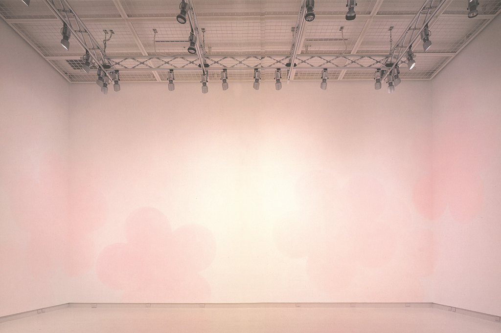 壁画の作品はもっとずっと後で、2003年頃からです。部屋に入った瞬間は真っ白に見えて何もないのかと思うくらいほんのりしたピンクで描いています。こういう壁画を描くようにな ったきっかけは、もともとはくっきり見えるプランで描くつもりでアトリエであれこれと試行錯誤していたときのことです。やり直しをしたくて描いたものの上から白ペンキを塗っていたのですが、ピンクってなかなか消えないんですよ。本当はグレーで消すのが正解らしいのですが、私はそれを知らなくて何回も塗り重ねをしていました。するとピンクがほんのりしてきて、それに惹かれている自分に気が付いたんです。それでそのギリギリ見えるか見えないかというピンクを作品にできないだろうか…と。おもちゃやテレクラの派手なピンクとは真逆なんですけれど、惹きつけられるという意味で私にとっては同じなんです。過剰なピンクにしても、ほんのりしたピンクにしても、とことんまで振りきらないと気が済まない性格なんだと思います。先ほどのカメラの話につながるんですけれど、ほんのりした壁のピンクを発見したとき、「これってイチゴ大福と同じだ!」って気づきました。イチゴの色がもちの下から透けて見えますよね。和菓子は食べ物としてはそんなに好きではなかったんですけれど、写真を撮りたいがために昔よく買っていました。視覚的に惹かれるというだけでなく、内側からふわっと膨らんでくるような形に触覚的に惹かれます。同じ理由でパンもたくさん撮っていました。