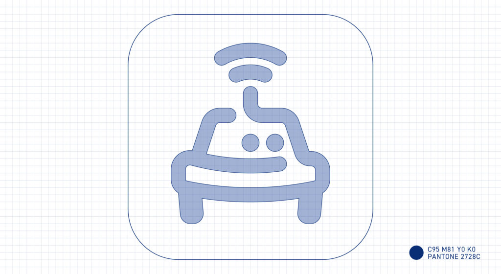 上記のコンセプトを最も効果的に体現するアイデアとして、自動運転車を擬人化するデザイン案を練り上げた。無人運転を、自動車が周囲を観察しながら走行することと捉え、その様子を親しみやすく表現。全体に緩やかなカーブを用いることで、見る人が温かみを感じられるキャラクター性を付与した。これにより安心感を感じさせつつも、普遍性、公式性を担保するデザインに仕上げた。